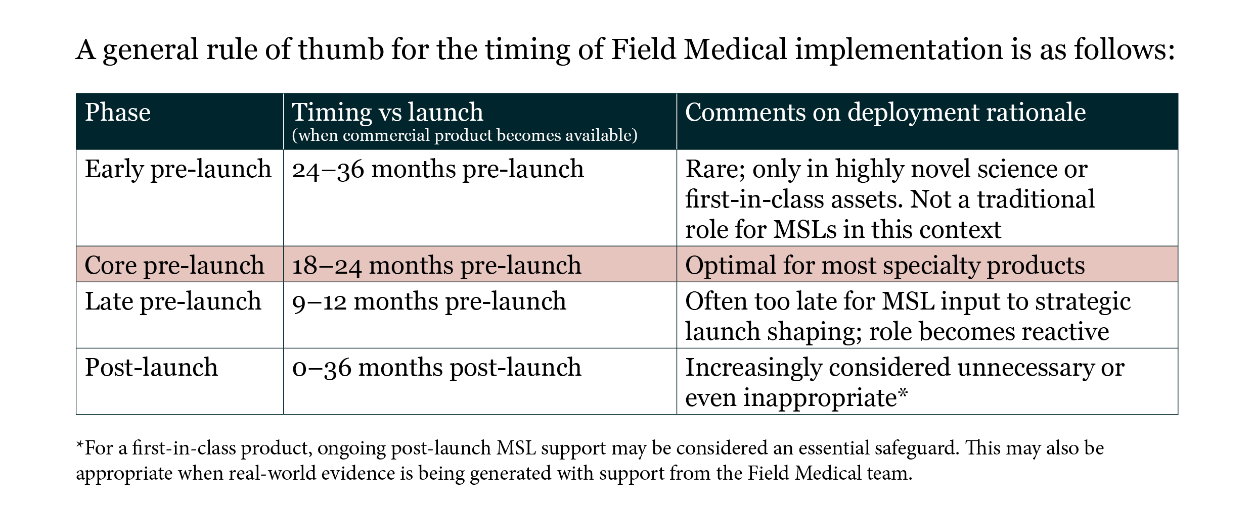 The impact that Field Medical teams can have in the pre-launch and launch phase of any new medicine is second to none. All companies should place the development of such an external engagement force at the very top of their launch readiness plans.
